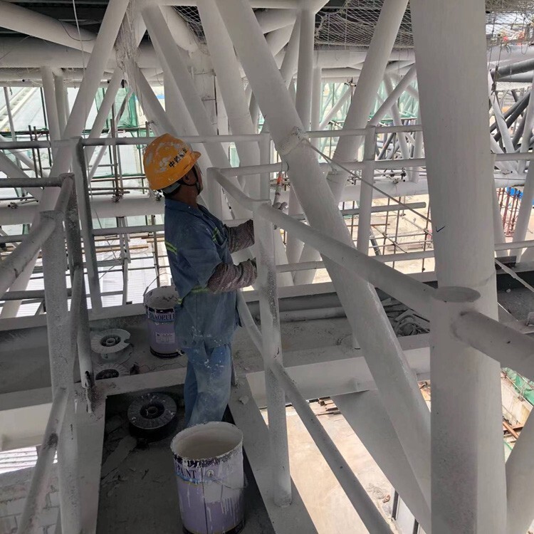 預涂底漆和中間漆,間隔24小時實干后覆涂本產品。采用噴涂工藝,噴涂1-2道,達到規定膜厚,推薦厚度60μm,施工完畢漆膜應光滑平整,顏色一致,無流掛、起泡、橘皮等漆病。